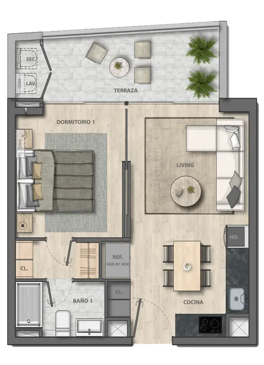 Las tipologías incluyen 1D1B perfectos para quienes buscan su primera vivienda o inversión y amplios 3D3B para familias que valoran comodidad y distribución. Además, el piso 8 cuenta con unidades exclusivas con azotea, un atributo distintivo para disfrutar de mayor espacio exterior.
