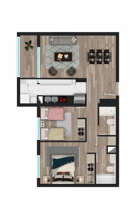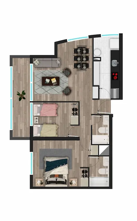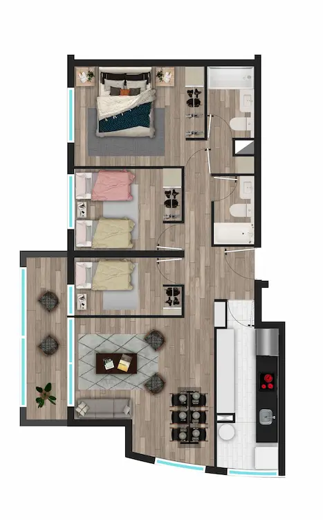 Zañartu 2807 ofrece departamentos de 3 dormitorios + 2 baños, 2 dormitorios + 2 baños y 2 dormitorios + 1 baño, diseñados para adaptarse a las distintas etapas de la vida, desde quienes buscan su primera vivienda hasta familias que valoran los espacios amplios y funcionales.